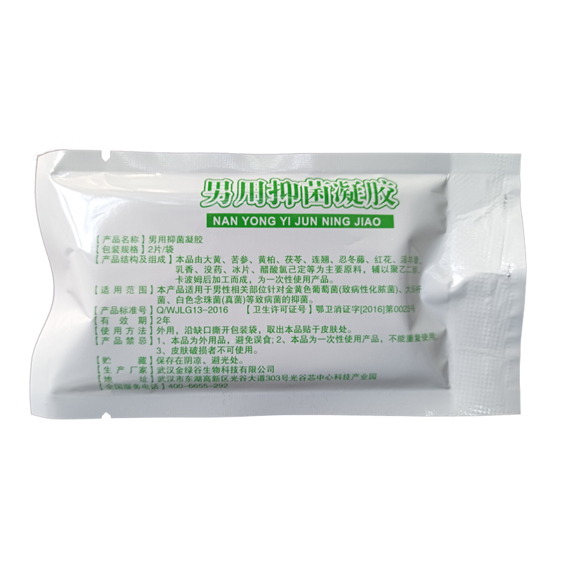 我們這款男用抑菌凝膠產(chǎn)品是依據(jù)《中華人民共和國藥典》規(guī)定的標準規(guī)范生產(chǎn),產(chǎn)品主要由大黃、苦參、黃柏、茯苓、連翹、忍冬藤、紅花、穿山甲、淫羊藿、乳香、沒藥、冰片等各種中草藥及醫(yī)用原料加工而成,同時通過輻照殺菌和鋁箔袋密封包裝,以保證產(chǎn)品的效期。