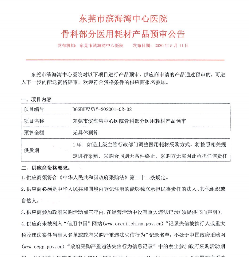 膝關節(jié)支具、前臂夾板、指骨夾板、撓骨夾板等骨科耗材預審中標公告【廣東東莞市濱海灣中心醫(yī)院】