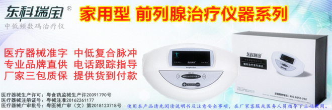 東科瑞寶牌前列腺治療儀器-中低頻數(shù)碼治療儀<家用系列/醫(yī)用系列>,為輔助治療前列腺炎等疾病專用泌尿外科男科治療儀器設(shè)備,屬于二類醫(yī)療器械產(chǎn)品,采用多級(jí)性中低頻復(fù)合脈沖電流,根據(jù)前列腺特性而專門(mén)設(shè)計(jì)的電腦程序控制,利用理療電極片等配件耗材輸出,并通過(guò)特定穴位經(jīng)絡(luò)釋放起到相關(guān)治療理療作用,操作簡(jiǎn)單方便,廠家三包質(zhì)保,提供客服一對(duì)一指導(dǎo)服務(wù),2019年度新產(chǎn)品優(yōu)價(jià)發(fā)售,并贈(zèng)送雙倍會(huì)員積分,可兌換豐富會(huì)員禮品和會(huì)員優(yōu)先服務(wù)。