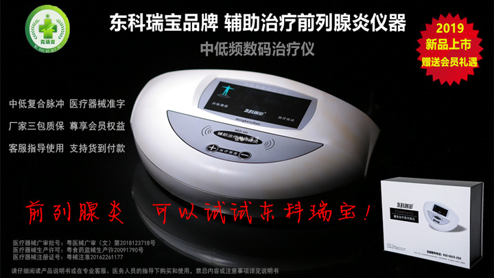東科瑞寶牌前列腺治療儀器-中低頻數(shù)碼治療儀<家用系列/醫(yī)用系列>,為輔助治療前列腺炎等疾病專(zhuān)用泌尿外科男科治療儀器設(shè)備,屬于二類(lèi)醫(yī)療器械產(chǎn)品,采用多級(jí)性中低頻復(fù)合脈沖電流,根據(jù)前列腺特性而專(zhuān)門(mén)設(shè)計(jì)的電腦程序控制,利用理療電極片等配件耗材輸出,并通過(guò)特定穴位經(jīng)絡(luò)釋放起到相關(guān)治療理療作用,操作簡(jiǎn)單方便,廠家三包質(zhì)保,提供客服一對(duì)一指導(dǎo)服務(wù),2019年度新產(chǎn)品優(yōu)價(jià)發(fā)售,并贈(zèng)送雙倍會(huì)員積分,可兌換豐富會(huì)員禮品和會(huì)員優(yōu)先服務(wù)。